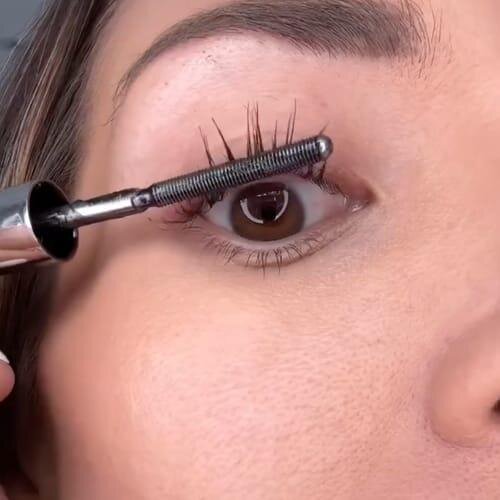 La brosse métallique charge chaque cil individuellement avec la quantité parfaite de produit.