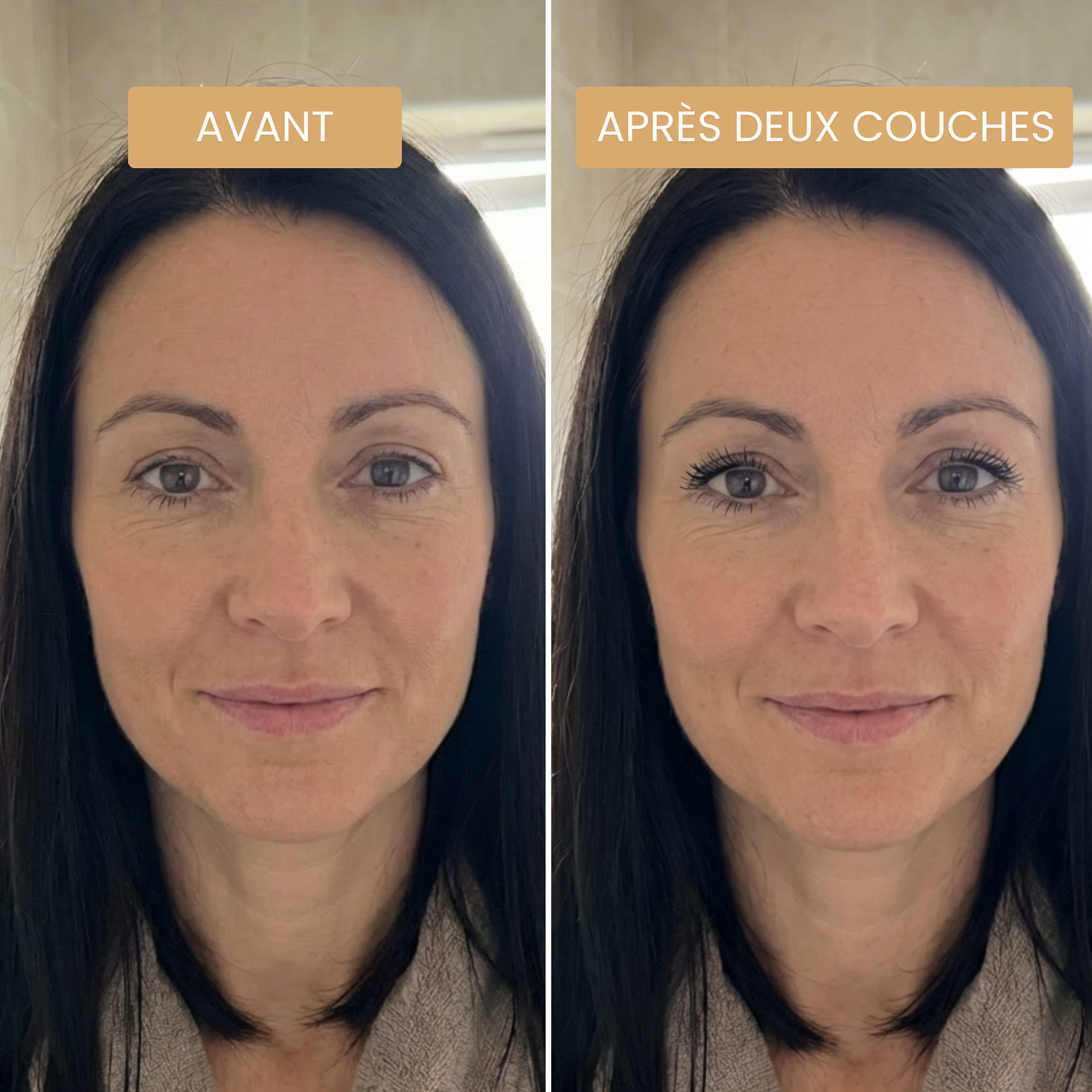 La brosse fait tout le travail : elle sépare automatiquement chaque cil et dépose juste la bonne quantité de produit. Une seule couche suffit pour un résultat spectaculaire.