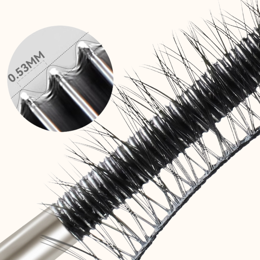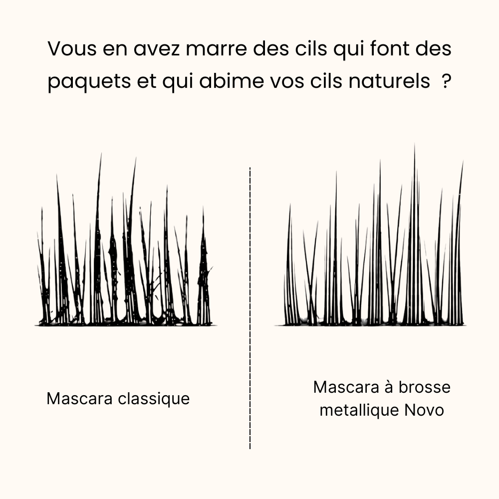 La brosse métallique de Novo sépare CHAQUE cil individuellement grâce à ses micro-poils espacés avec précision.